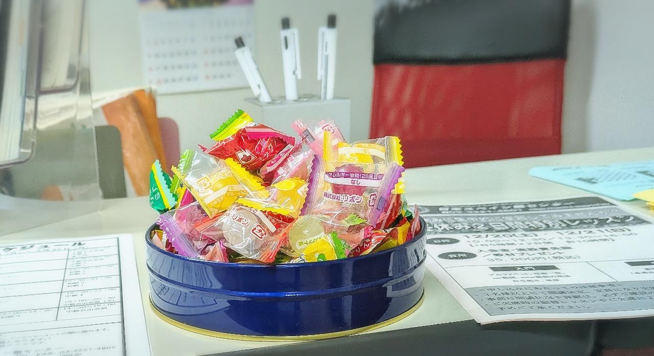 当センターの受付には皆さま用に缶に入れた飴を置いてあります。